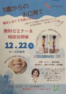 12月22日「3歳からのお口育て」、1月21日「ベビーマッサージ」イベントのご案内