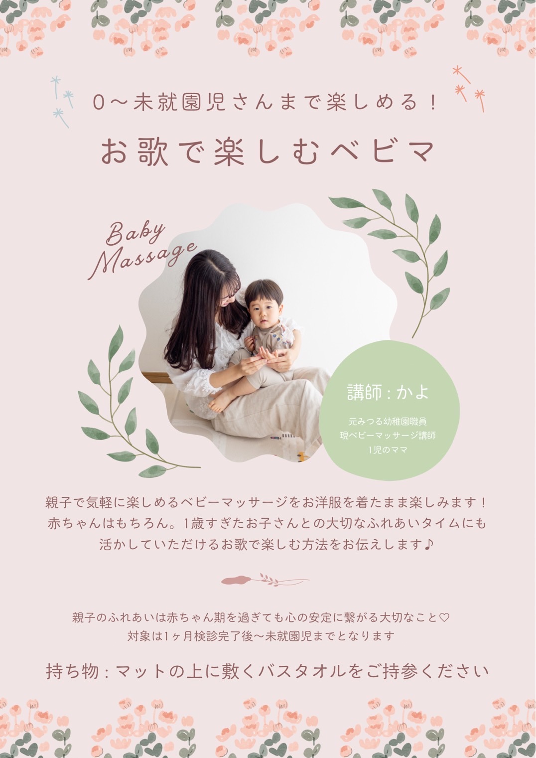 講師は元みつる幼稚園教員。現ベビーマッサージ講師の かよ先生です。